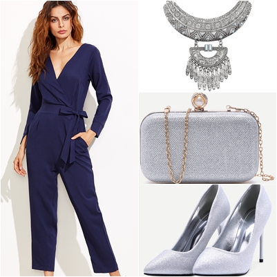 Takođe, kombinezon je odevni komad koji je uvek moderan i može poslužiti u raznim prilikama. Moj predlog je jednostavni kombinezon teget boje, koji možete začiniti dobrim komadom nakita i srebrnom obućom.